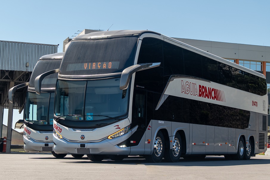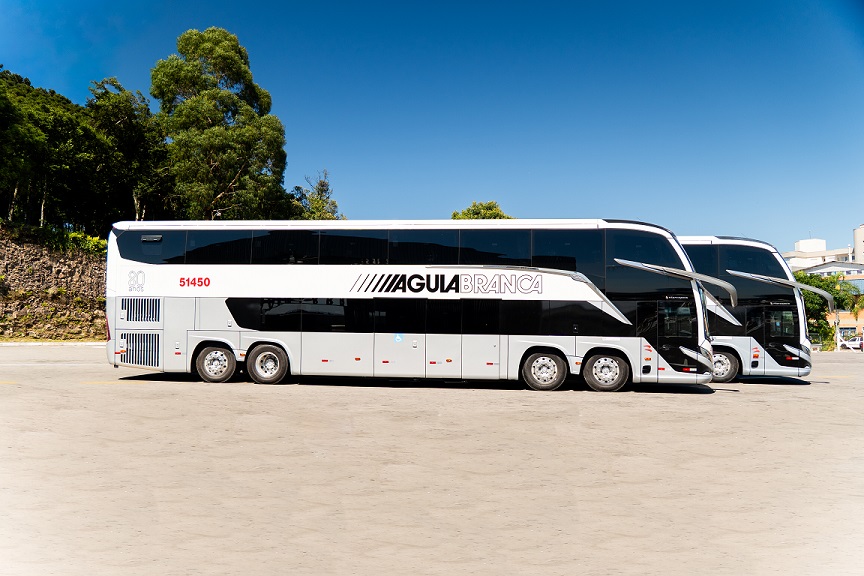“A Viação Águia Branca é cliente da Marcopolo desde 1971 e sempre se destacou por introduzir novas tecnologias e tendências. Foi a primeira a incorporar os modelos da Geração 8. A pintura comemorativa combina com as linhas modernas e arrojadas do DD que, com certeza, vão se destacar nas estradas brasileiras”, destaca Ricardo Portolan, diretor de Operações Comerciais Mercado Interno e Marketing da Marcopolo.