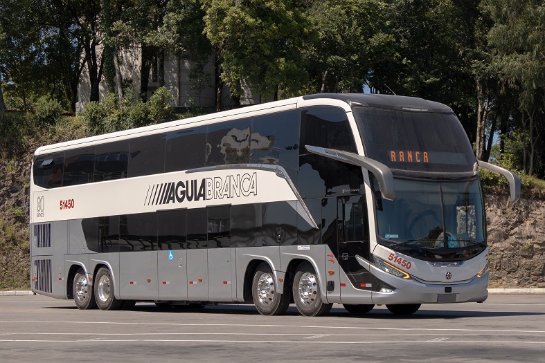 “A Viação Águia Branca é cliente da Marcopolo desde 1971 e sempre se destacou por introduzir novas tecnologias e tendências. Foi a primeira a incorporar os modelos da Geração 8. A pintura comemorativa combina com as linhas modernas e arrojadas do DD que, com certeza, vão se destacar nas estradas brasileiras”, destaca Ricardo Portolan, diretor de Operações Comerciais Mercado Interno e Marketing da Marcopolo.