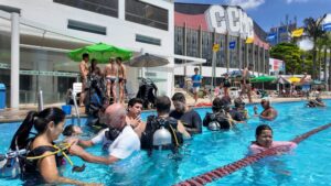 Participantes da atividade puderam conhecer a prática durante a experimentação realizada no parque aquático do complexo de esportes e lazer...