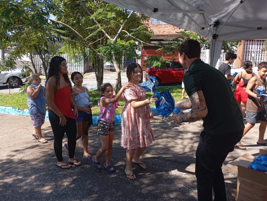 A iniciativa, que já se tornou uma marca de sua atuação social, ocorreu na manhã deste sábado (4 de abril). Para garantir que o presente chegasse às mãos dos pequenos, o vereador e sua equipe realizaram um planejamento antecipado, mapeando a demanda da região para que nenhuma criança ficasse de fora da celebração.